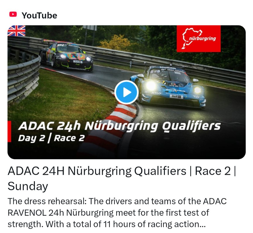 予選レース(QFレース)はYouTubeのニュルブルクリンクの公式チャンネルで放送されますよ!