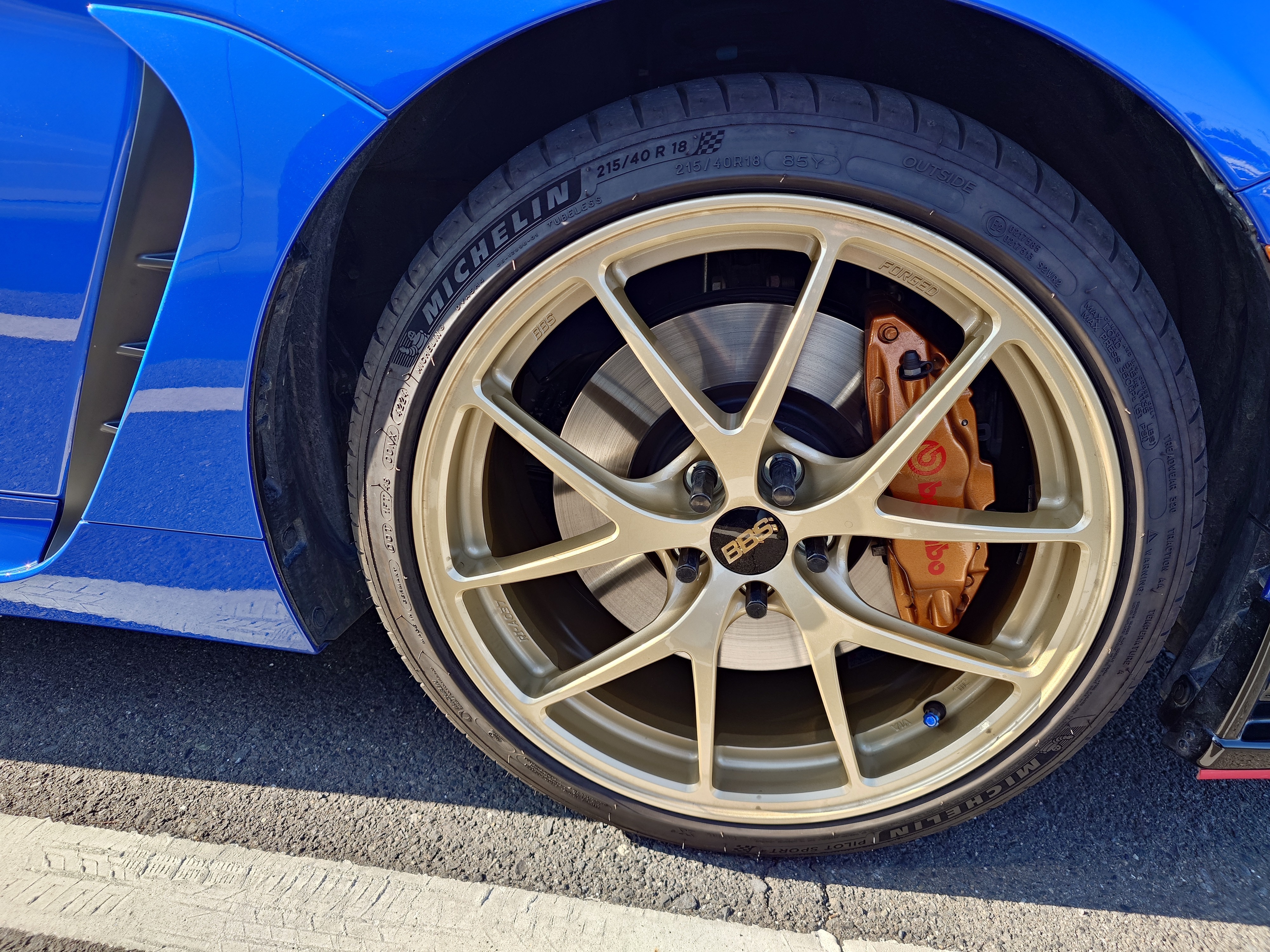 その後はBBSホイールのRI-A、18インチ8Jを取付したり、スバルの六連星エンブレムをチェリーレッドカラーにしたりしました。