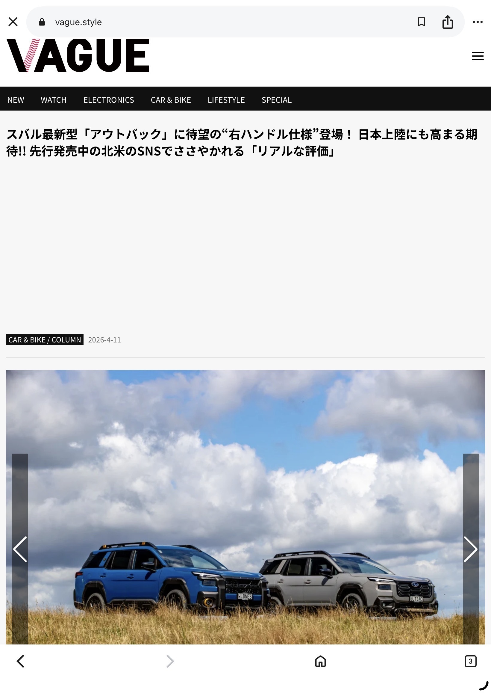 北米で先行発売された第7代「アウトバック」がオーストラリアやニュージーランドで右ハンドル仕様が発表されたという情報。この右ハンドル仕様が国内の熱い待望論に応えて日本市場に投入‼️なんて。何とかなりませんかね。