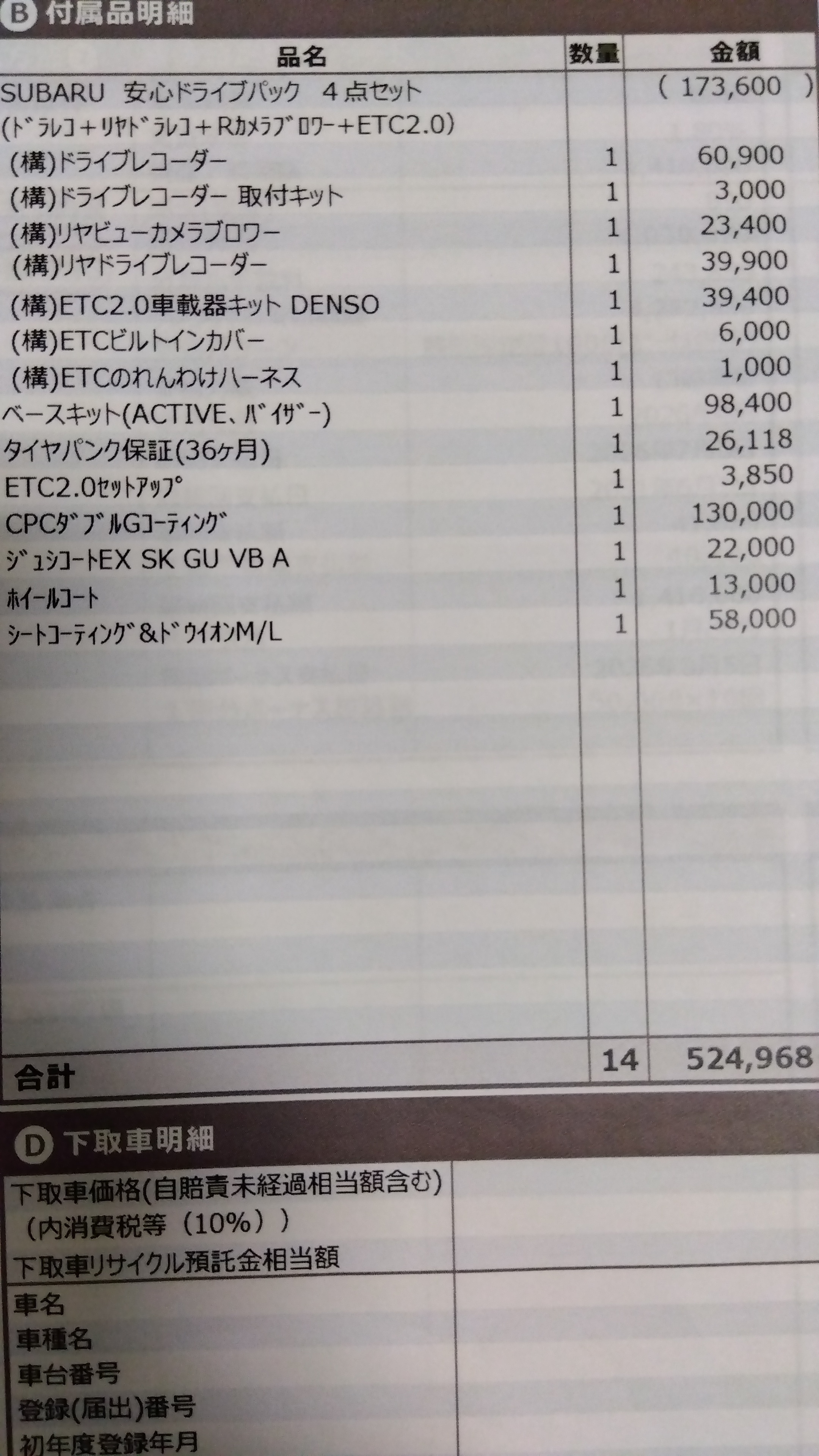 クルマが欲しくて欲しくてたまらない日々です。前に貰ったクロストレックの見積書。なんで高いんだろうと思ったら付属品が...営業の方に任せて大体の値段でお願いしたので当然ですが...削れれば少し安くなるのでは?と思いました。
