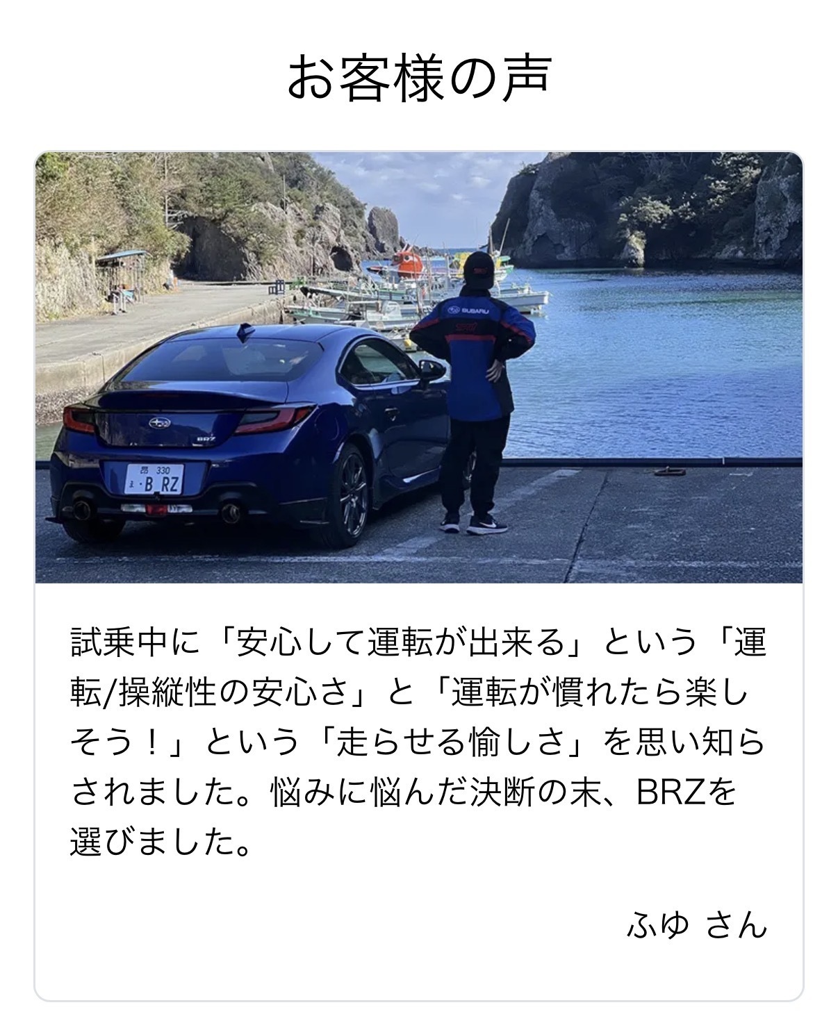 トップ > フリートーク > フリートーク > なんとなくスバルの公式ホームページのBRZの... さくま 2026/04/07 23:51 <p>なんとなくスバルの公式ホームページのBRZのページを見ていたら</p><div class="se-component se-image-container __se__float-none"><figure><img src="https://community.dl-asobica.com/public/uploads/ckeditor/pictures/1089729/86d21c6d-018a-47fb-b0b1-bcdc8e914862.jpeg" alt="" data-rotate="" data-proportion="true" data-size="," data-align="none" data-percentage="auto,auto" data-file-name="86d21c6d-018a-47fb-b0b1-bcdc8e914862.jpeg" data-file-size="undefined" data-origin="," style=""></figure></div><div class="se-component se-image-container __se__float-none"><figure><img src="https://community.dl-asobica.com/public/uploads/ckeditor/pictures/1089730/fa5faafa-117f-4f07-8ad3-83bf297e60d6.jpeg" alt="" data-rotate="" data-proportion="true" data-size="," data-align="none" data-percentage="auto,auto" data-file-name="fa5faafa-117f-4f07-8ad3-83bf297e60d6.jpeg" data-file-size="undefined" data-origin="," style=""></figure></div><p>知っている方が載っていてなんか嬉しい♪</p> なんとなくスバルの公式ホームページのBRZのページを見ていたら 知っている方が載っていてなんか嬉しい♪ いいね 共有する 共有する X facebook LINE リンクをコピー トークにコメントする 1件のコメント (新着順) ミュートしたユーザーの投稿です。 投稿を表示 kamaken 2026/04/08 17:46 気づいていただき有り難うございます!! イグニッションレッド(A型)に乗っていた頃のコメント、まだ掲載されているんですね💕 A型では2回、D型では1回、ソロキャンプへ行っています。 キャンプ場内の路面状況には要注意ですが、アウトドアでも大活躍です…🤣 いいね 返信する