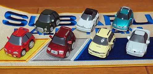 20年くらい前でしょうか。市販チョロQにない車種のボディをフルスクラッチで自 作することが流行りました。スーパーカーやレーシングカーを作る方が多い中、自分はスバル車ばかり作ってい ました。 初めて作ったのがアルシオーネSVX。次いで初代アルシオーネ2.7VX。 当時開催されていた