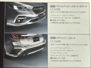 北海道スバル 初売りフェアでSUBARU 純正用品が10%OFFという事で黒樹脂隠しでレヴォーグ純正エアロのフロントとリアを購入する予定です。写真の様なレヴォーグになると思われます。