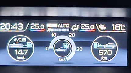 総合カスタムの成果あり?:VAG燃費 リアアンダースポイラーにシェブロン、ホール:BBS(VAB純正BBS)、エーゼット:二酸化モリブデンのカスタム後初の390kmドライブ 高速道路中心で一部渋滞(関越道)をツーリングアシストメインで達成した燃費は14.7km/l なかなかの数値で喜びもひとしお