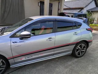 インプレッサですが、青色にしたかったが、汚れが目立つから、シルバーにしなさいと言われ目立たないシルバーのため、 ステッカー大好きで、いろいろ貼ってしまいました。 ガラスコーティングしてあるので、いつでも綺麗に剥がせると思って。