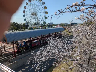 愛知県碧南市の明石公園の桜、平日でも、屋台有り。パターゴルフ、ジェットコースター、ゴーカートも有る。