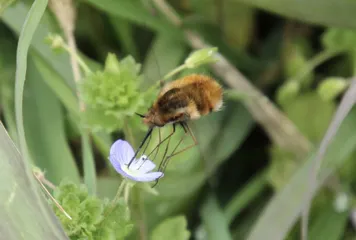 季節限定の子 昆虫界の「春の妖精」ビロードツリアブが今年も現れています!我が家ではビロードさんと呼び、楽しみにしています🐝ソメイヨシノの開花の少し前に現れ、ゴールデンウィーク前後には姿を消してしまう季節限定のアブ🪰可愛らしい姿から自然観察会では人気者だそうです🥰