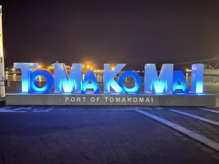 苫小牧西港キラキラ公園ライトアップ‼️ 青々と綺麗に文字が浮き上がり綺麗でした。