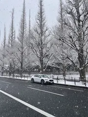 雪景色のいちょう並木とWRX 雪が降るいちょう並木はなかなか見られないと思い、撮った1枚です。ブリザックとシンメトリカルAWDのおかげで走行も安心でした。