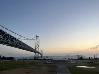 【朝焼け☀️】明石海峡大橋がくっきりと おはようございます☀道の駅あわじで仮眠しましてすっかり目覚めました。朝ごはん食べて、スバロード淡路島へ出発です🫡