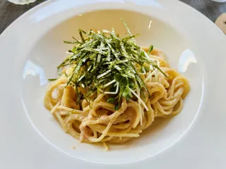 パスタ (たらこパスタ) 月一ぐらいで温泉ついでにランチしてたら顔覚えられてしまった🤣 相変わらず辛口のジンジャエール美味し 是非奥津温泉花美人の里を利用されたら隣の7up⤴︎を利用くださいまし🍽