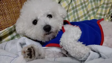 🐕️STIドッグ🐕️ 冬に近づきワンコの服も購入し、STI色の服を着させました。 アイキャッチ画像は弟犬ビションフリーゼの「リツくん」↑は兄犬同じくビションフリーゼの「ムクくん」 この冬も風邪にならず温かく過ごしてもらいたいです。