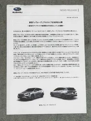 2019年の東京モーターショーで配布されたレヴォーグ プロトタイプのNEWS RELEASEが出てきました。当時、メルカリで出品されていて落札したもので原盤は綺麗に収めて保存してます。数年後にレヴォーグを購入するとこの時は、考えてませんでした。