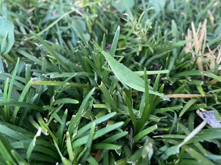 草むしり 去年あたりから棲みついているショウリョウバッタ。植えたわけではないツユクサをだいぶ食べて育ったようです。とりあえずドクダミをむしっていると地響きで驚いてどんどんでてきました。 去年はカーポートをバラした時のポリカーボネート板に挟まれた子もいて申し訳なかったです。 雨降って地面が緩