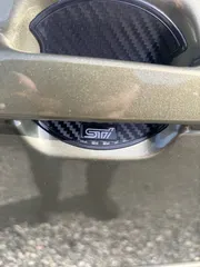 STIドアハンドルプロテクター 納車から半年過ぎてからスバルディーラーで購入と取り付けを行いました。自分のフォレスターはオータムグリーンメタリックですがカーボン調にSTIのロゴがイイ感じなのでお気に入りのパーツです。