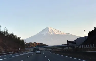 朝の富士山 新東名高速道路、新清水出口付近で正面に見える富士山です。(助手席の愛妻撮影)毎回東京へ行くときはこの富士山を楽しみに走っています。上の画像は1月。下の画像は今月です。なぜか毎回、行きは綺麗に見えるのですが、帰りは雲の隠れて見ることが出来ない富士山なのです。