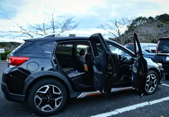 一息入れて💨 駐車場で佇むXVさん🚐桜の木の影から顔をのぞかせて😃大きなもみじの木の下で🍁