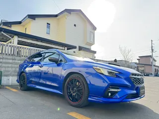 スーパー駐車場にてレヴォーグ撮影‼️ フロントとリアに純正エアロを付けただけで見た目が変わるので驚きです。