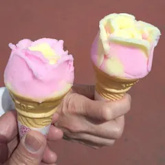 秋田県北部生まれです! 桜の時期の東北良いですね🌸 男鹿半島エリアの見覚えのある観光名所のお写真が沢山で✨ ババヘラ大好きです😍 私が子供の頃はこの様なバラ盛りは無く、普通にヘラで盛り付けてるだけでした。 ちなみに店員さんがオジさんの場合は「ジジヘラ」というんですよ😆