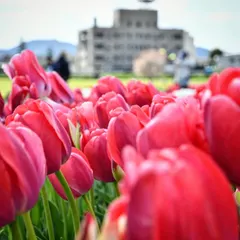 チューリップ真っ盛り🌷 河川敷に咲くチューリップの花🌷桜に負けず、きれいに咲いています🌸どの花観ても、きれいだなぁ✨🎵まだまだ花が散らないでほしいなと思いました☺️