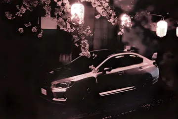 春の夜の夢🌸 【花桃の花言葉】「チャーミング・天下無敵」愛らしさと勇ましさスバリストなら気になるワードですね✨【妖艶な魅力】「花桃とSUBARU WRX S4」雨の雫がヘッドライトに照らされ霞む妖艶な光を放つミステリアスな春の夜✨【儚い美しさ】「春の夜の夢」開花の時期は桜と同様にとても短くその美しさは瞬く間