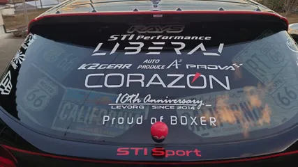 リヤゲートガラスステッカー 自作のステッカーRAYS、STIPerformance、K2GEAR、AUTOPRODUCE A3、PROVA、CORAZON、10th anniversary、Proud of BOXER、STI Sport