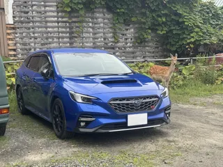 蝦夷鹿にレヴォーグ狙われる‼️ 砂川市へ向かう為に宿の駐車場へ向かったら蝦夷鹿にレヴォーグが狙われてました。よく見ると駐車場の草を食べたかった様で安心しました。