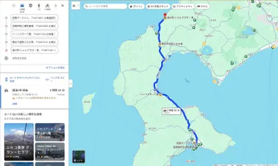 実はこれ 札幌在住のゲーム友達が全部情報くれたんですよ🤣 食事、道の駅、温泉などなど こんなに親身に教えてくれた以上きちんと予定組まないとなってなって全部は無理だったんですが寄れるとこはよろうって感じで行けそうなルートを考えました! それがこのルート(添付分)で、行けるかなぁ? なんて思ってたら3日