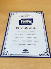 SUBARU車の殆どの車種を試乗してますが、はじめて認定修了証を頂きました。
