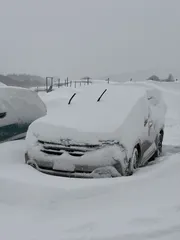 裏磐梯の宿の駐車場に止めたフォレスターが、朝にはこうなっていました