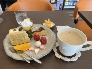 カフェでひと休み 夕方の友人達との待ち合わせ時間までまだあるので、カフェでひと休み☕️先日の女子会カフェでcafé au laitとおまかせケーキセットをいただきました🍰ベイクドチーズケーキ、プリン、季節の桜シフォンケーキ…お皿の盛り付けも春めいていて、幸せな午後のひと時でした🌸☺️