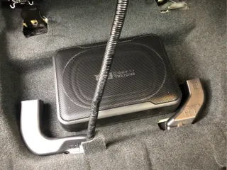 サブウーファーとダクトエキステンダ フロントガラス側から写したものです。