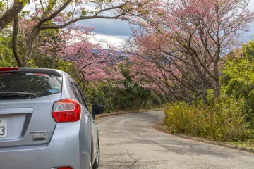 雪道を走ってみたい雪なし沖縄人です 沖縄では桜(避寒桜)が大詰めです。ピークは先週あたりかな 昨日ドライブしてきました。 沖縄の桜は緋寒桜(避寒桜)といい寒い時期に咲くのです沖縄も1月後半から2月が一番寒い季節とはいえ 桜見ると暖かい気分になりますね♪