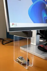 ちょっとお遊び… パソコンモニターを新調して画面が大きくなったのは良いのですがキーボードやマウス作動時にモニター画面が若干ゆれるので揺れ防止にアクリルボックスで突っ張りました味気ないのでスバル360さんの駐車場にしてみました