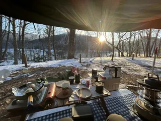 久しぶりのキャンプ🏕️ 久しぶりのキャンプに行って来ました🏕️キャンプは桜の時期以来、SLフォレくんになって初めてのキャンプです。同じ荷物を積んで初めてわかるSKとSLの違い。ちょっとラゲージの横幅が狭くなったかな?移動中後ろで寝袋がコロコロ転げていました😆晴天に霧氷❄️良い眺め〜。スノーピークで買い出しです。