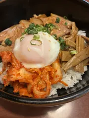 チャーシュー丼 チャーシュー、キムチ、メンマ、温泉たまご、大好きな食材達を全部乗せ、これも美味しかったです(^^)ご馳走様でした😋