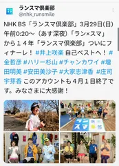ランスマ倶楽部最終回(泣)〜ふくい桜マラソンへ🌸 NHKBSで放送されていました「ランスマ倶楽部」もうすぐ最終回(泣)ですう〜初心者〜中堅〜シリアスランナー。はたまた トレランまで網羅していて、ランナーの指南書的な番組でした。膝痛 腰痛 足底筋膜炎 で走れないときも この番組見てると 励まされ モチベーションが逆にアップする元気づけられる番組でした