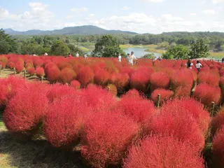 るるパークのコキア 連投すみません💦大分県の山香にある「るるパーク」のコキアが見頃とのことで、行ってきました。https://www.oita-agri-park.or.jp/赤いもふもふ 可愛いです✨園内を一周ウォーキングしました😊コキアソフト🍦を頂きました。抹茶とストロベリーのコラボです😆クロストレックさんの横にお