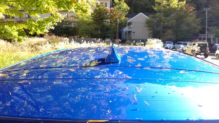 なんじゃ❗️こりゃ?🍂 奥日光に宿泊しホテルの駐車場に朝行くと「なんじゃ❗️こりゃ?😖💧💨」 雨風でルーフからボンネット細かい松のような葉だらけで…😢⤵️⤵️ ある程度乾燥し帰路の高速道路走行したら飛んでいきましたが 細かい窪みの葉はまだ取れず。エアインテークの部分はあらかじめ手でとって走行。