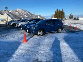 12ヶ月点検 フォレスターの12ヶ月点検でディーラーに行ってきました🚙 ガラス越しで点検の様子を眺めながら待ちます😊足廻り、割と錆びてるなぁ。。お隣のクロストレックのナンバープレートが万博のミャクミャクデザインでした!ドリンク3杯いただきました😋気がついたら後ろの方にいました。フロントから気になることは