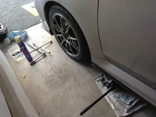 年末のスキーに向けて準備開始 まずはノーマルタイヤをスタッドレスにローテーションしながら付け替え 7年使用した油圧ジャッキのオイル洩れが限界で、オイルを補充しながらジャッキアップ、それでも徐々に下がってきてしまうので時間との勝負でした