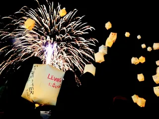 冬の夜空を彩る大花火と幻想的な灯りゲレンデに浮ぶスノースカイランタンひとりひとりの思いを乗せて揺らめく✨あなたと車どんな物語がありますか✨