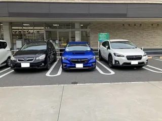 行きつけのスーパーで曇天の下スバルの法則 八尾市の家内の実家から近い行きつけのスーパーで珍しく両脇がスバル車でした。