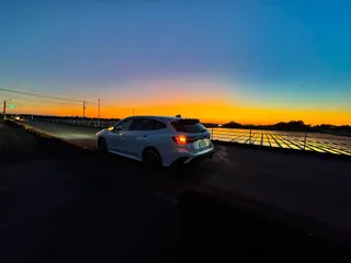 ほぼ一緒 停めた時はぼっちでしたぽつん…お買い物したりランチしたり昔懐かしナポリタン駐車場に戻ってくるとなっなんと!お隣にセラミックホワイトのレヴォーグさんしかも、ほぼ一緒😆フロントグリルも替えてるし、ホイールも艶なしと艶ありの違いはあれど一緒💓違うのはドアミラーとエアロパーツエアロパーツはカラードを付けてま