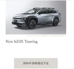 お? こんばんは えくぼレガシィ13歳です トヨタHPにbZ4Xのサイトがあったので、見ていたら…これは…トレイルシーカーの兄弟のbZ4X Touringではありませんか2026年春発売予定⁉ってことはトレイルシーカーも…?(100%ではないです)