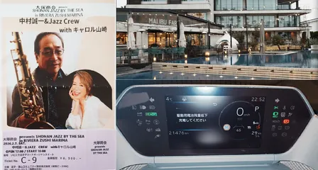 強い風が吹き付けてPalm-treeの葉が擦れる音が響く今日の逗子マリーナは、気温の割に寒い夕刻、富士は雲隠れしていました。 ライブは、ピアノトリオによるテンポ速くてエモーショナルなJazz、BとDrとバトルするピアノ、聞き覚えある曲になると少しほっとして、ある意味新鮮な時間になりました。&nbs