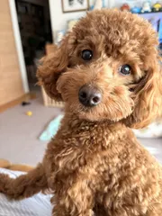 すこし誕生日の早い親戚のトイプーちゃんとママの帰りを待っています。 手前が親戚のトイプーですが、実際のサイズは半分なので遠近法ですねw 小さくて柔らかくて、すぐに怪我しちゃいそうです。。それに引き換え、、レイは筋肉質で運動神経も抜群で、パワーもあるので元気いっぱいです。