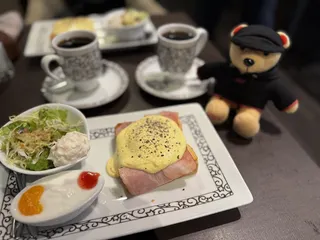 元町珈琲のモーニング☕️オーダーしたのは、エッグベネディクト黄卵とレモン汁とバターで作ったオランデーズソースをかけて食べます✨ソースはかけてくれます〜😆小倉トーストが食べたい…でもこのトーストも美味しそう🤣迷いに迷った挙句エッグベネディクトにしましたが、小倉トーストに未練が残る😅どっちも食べようか