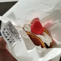 いちごどら焼 先日大阪→徳島へのバス旅※現地自由行動が当たり、色々巡って参りました。徳島から吉野川に沿うように列車で1時間ほど行った美馬市穴吹駅前で、目に飛び込んできた和菓子屋さん🍡 新製品との事で、買ってさっそくお店の外のベンチでパクっといきました✨️ おいちー😋2、3個は行けます♪ クルマ