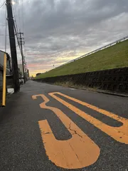 マジックアワー 17時過ぎに見た空道路には黄色で30まっすぐ伸びた道が延々続く アスファルトに書かれた30と夕焼け空が中々ハマっている。 自分の中では、最近撮った写真でお気に入りの1枚になりました。